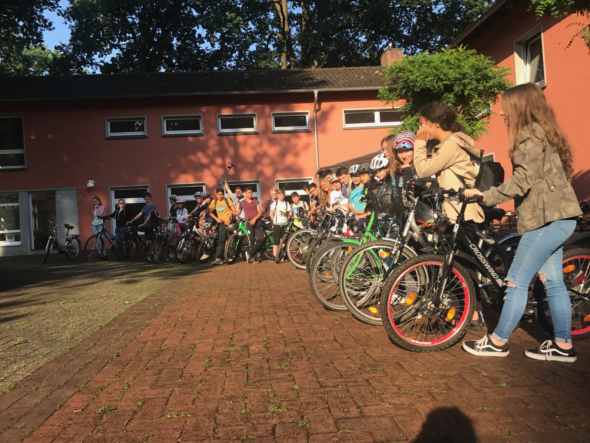 Am 3.7.2017 hat die Klasse 8c unter der Leitung unserer sportlich ambitionierten Klassenlehrer Herrn Spinne und Frau Flake eine Radtour zum Auftakt der Klassenfahrt unternommen. Das Ziel war unser Schullandheim in Rhade, der Weg führte uns über Gelsenkirchen, Gladbeck, Bottrop und Dorsten dorthin.