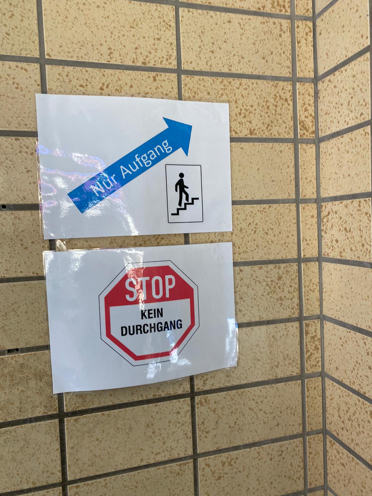 Im analogen Unterricht knurrt links hinten ein Magen. Abhilfe ist nicht in Sicht – der Gang in den nahen Supermarkt ist untersagt, die Mensa noch geschlossen. „Wir überlegen im Moment, ob wir zumindest ein to-go-Angebot eröffnen können", erzählt der Schulleiter. „Noch steht dafür aber das Hygiene-Konzept nicht.“ (Achtung: mittlerweile steht das Konzept und die Mensa hat ein to-go-Angebot!) Daher verbringt der Kurs die Pause auch im gut gelüfteten Klassenzimmer. „Zieht euch warm an“, rät der Abiturient den Mitschülern, die in den nächsten Wochen kommen dürfen: „Die meisten Lehrer reißen die Fenster auf und machen Durchzug.“