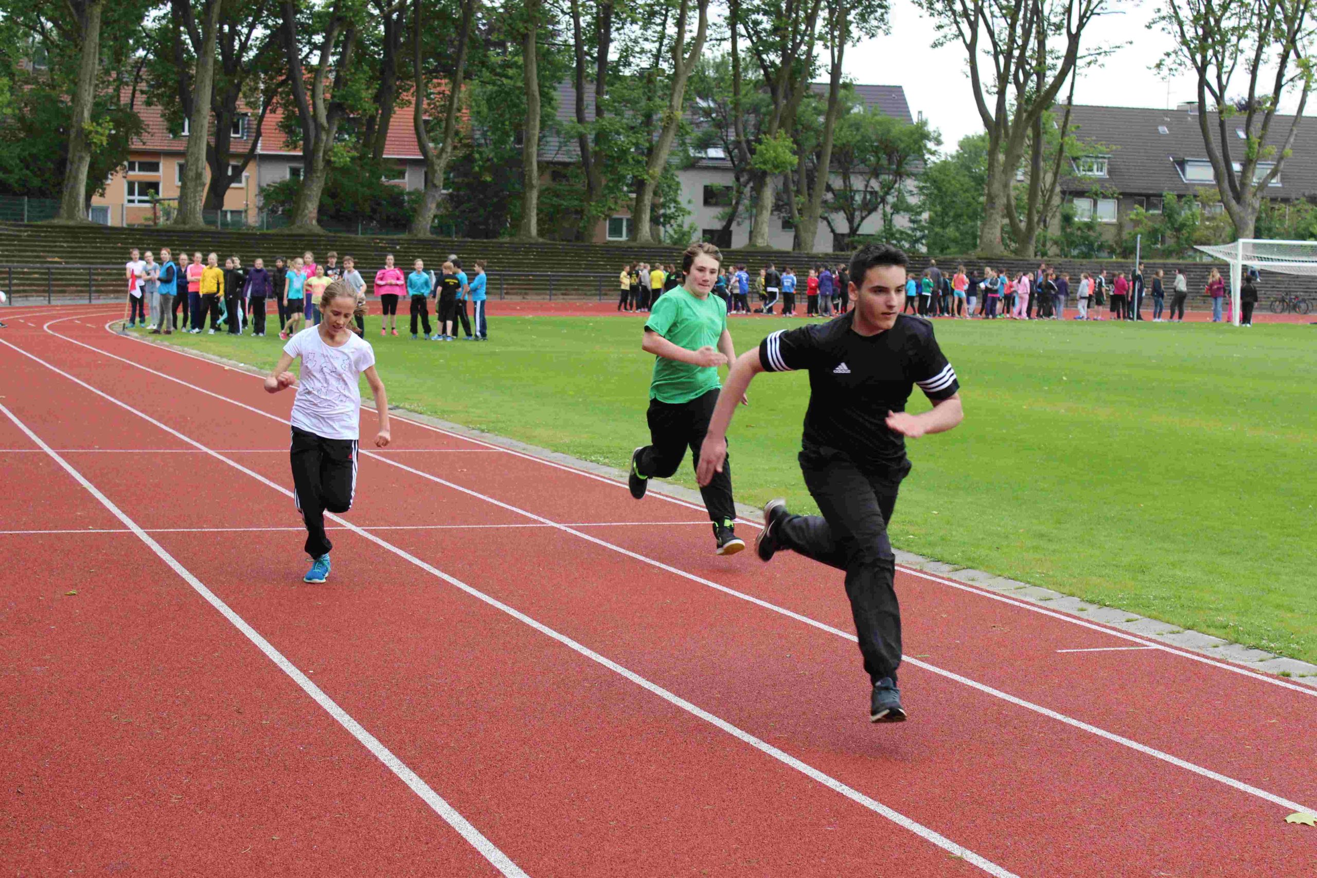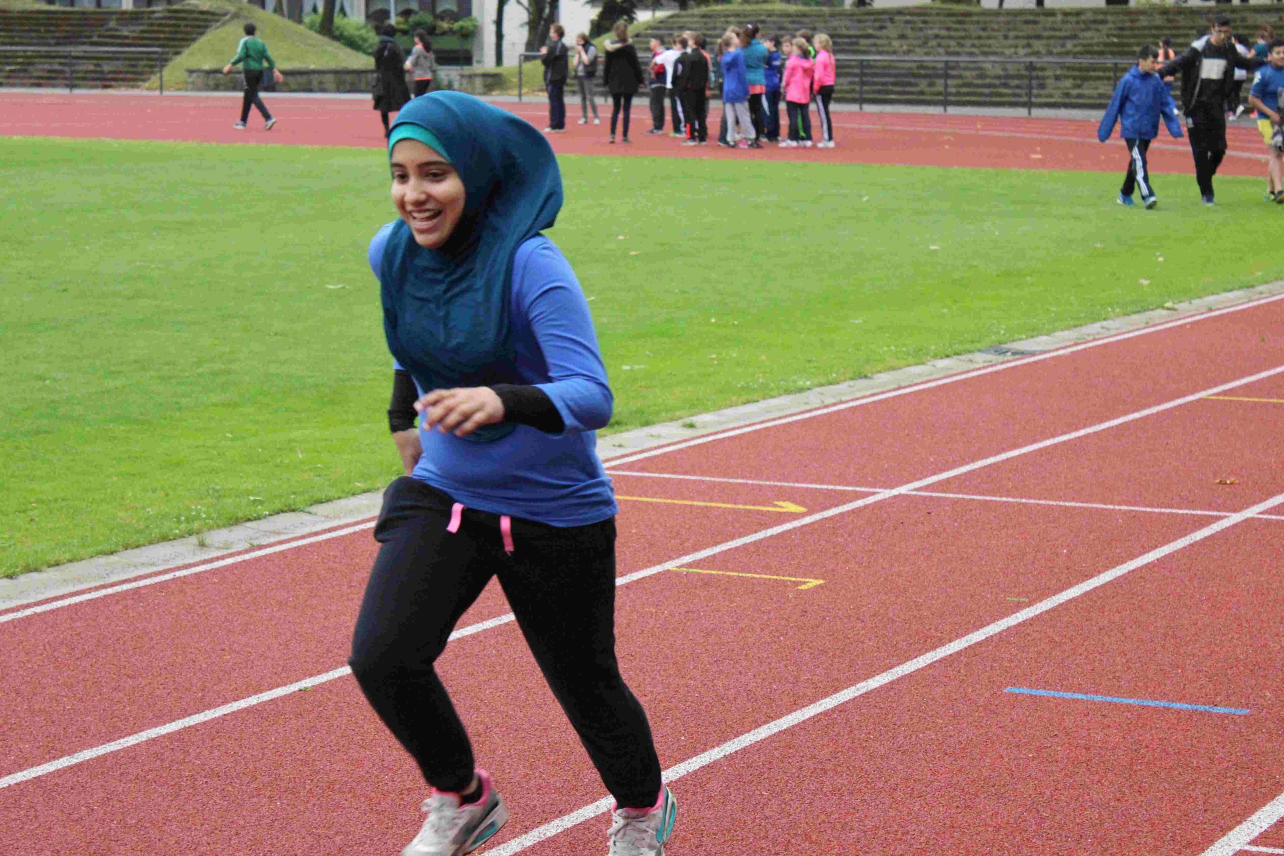 Die insgesamt 257 Teilnehmer und Teilnehmerinnen zeigten sich von ihrer sportlichsten Seite, denn in diesem Jahr nahmen 141 Athletinnen und Athleten nach dem traditionellen Dreikampf (Weitsprung, Ballweitwurf und Sprint) noch an der Ausdauerleistung (800m Lauf) freiwillig teil. Die schnellste 800m-Zeit der Mädchen in der Jahrgangsstufe 5 liefen Salma Boukarniaa (5d) und Hira Nur Özcan (5d) mit 03:37min, dicht gefolgt von Zülal Önerbay (5d) und Jola Musliu (5a) mit 03:39min.
