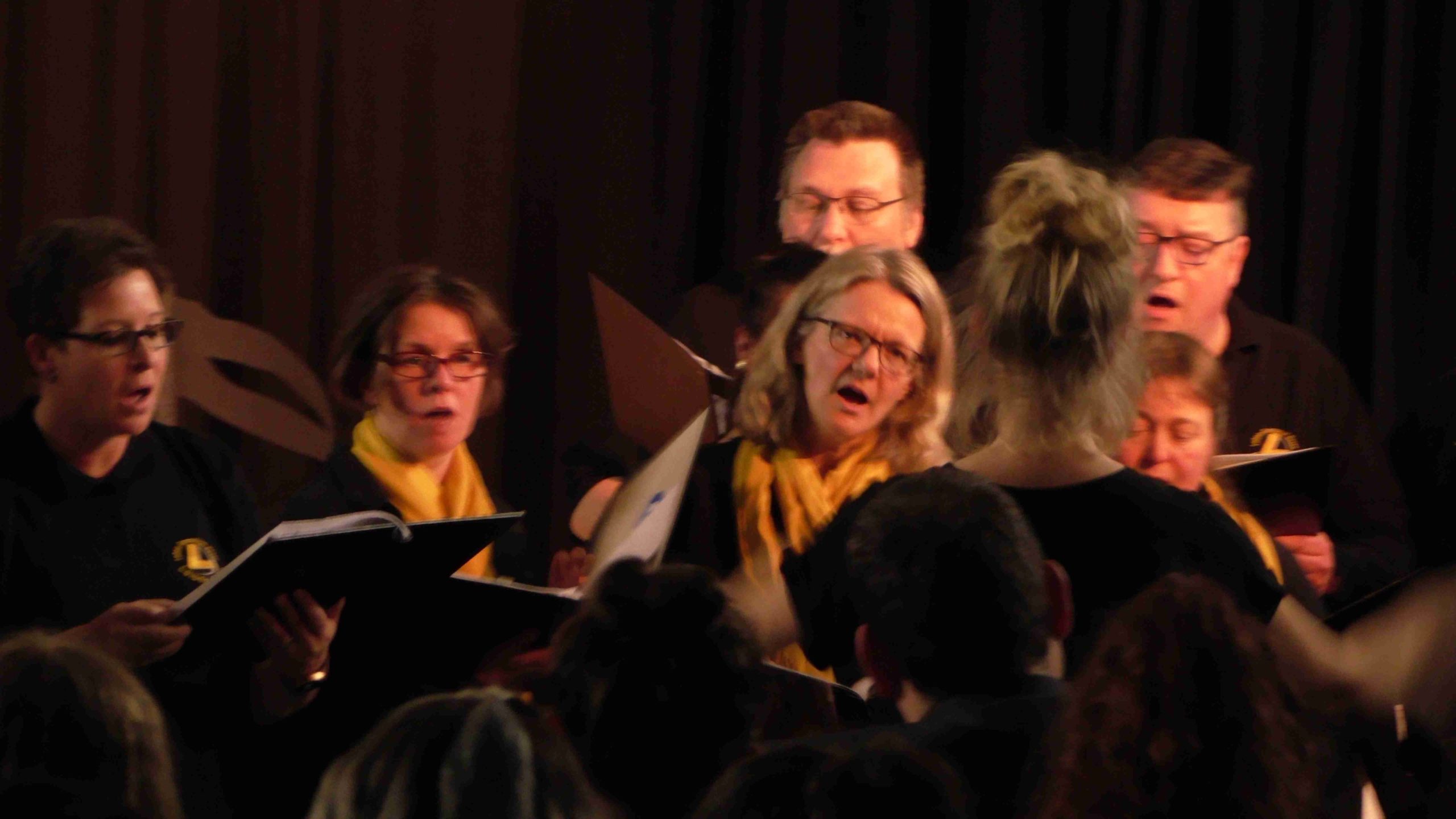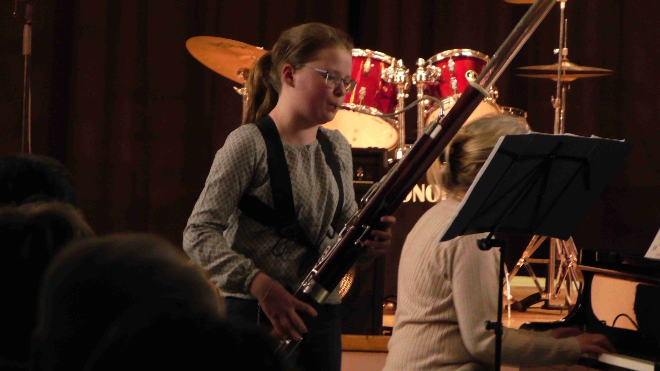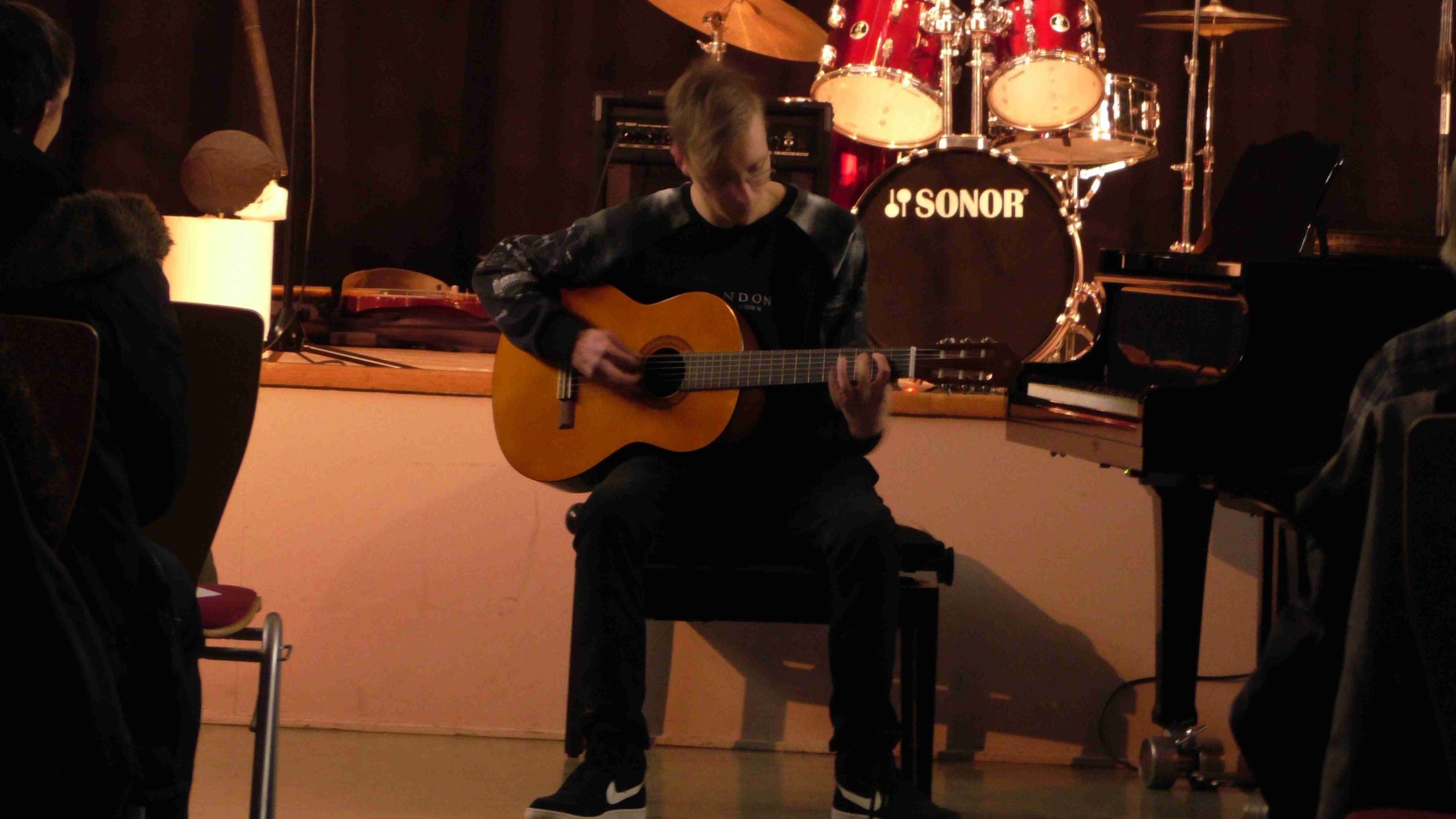 Kalte Finger, zusammengezogene Augenbrauen, fokussierte Blicke – die Konzentration der Aktiven beim Hörpunkt war deutlich spürbar. Mitten in der Mottowoche des Abiturjahrgangs, in der Hochphase von Klassenarbeiten und Klausuren sind viele mit anderen Dingen beschäftigt, als sich der Musik zu widmen. Nicht so allerdings die Aktiven, die in diesem Jahr beim Hörpunkt ihre Lieblingsstücke und -Instrumente vorstellten. Beeindruckend ist die musikalische Vielfalt der Leibnizianerinnen und Leibnizianer; ob Frühbarock oder aktuell, ob geblasen, gesungen oder getastet. Elegant moderiert von Carolin und Hussein verflog die musikalische Stunde wie im Flug. Allen Beteiligten – vor allem den begleitenden Lehrerinnen der Folkwang-Musikschule, die extra gekommen waren – an dieser Stelle noch einmal ein großes „Dankeschön“!