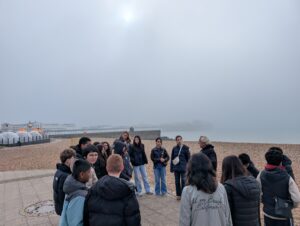 Der Montag begrüßte uns mit (stereo-)typisch britischem Wetter: dichtem Nebel und vor allem sehr viel Regen. Nach einer spannenden Stadtführung durch Brighton musste der geplante Ausflug zu den Seven Sisters leider aus Sicherheitsgründen abgesagt werden. Doch davon ließ sich niemand die Laune verderben. Daher ging es kurzerhand nach Eastbourne, wo die Schülerinnen und Schüler die Stadt und den Strand erkundeten.