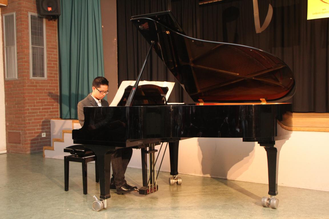 Die Fünftklässlerin Jessica Sawatzky gab mit L. van Beethovens "Für Elise" in diesem Jahr den Startschuss und stellte ihre musikalischen Fähigkeiten am Klavier ebenso bei D. Kabalewskis "Der Clown" unter Beweis. Abgelöst wurde sie von Florian Paul aus der 7b, der sein Horn mit auf die Bühne brachte. Der Zuhörer wurde durch den tänzerischen Takt in P. Wedgewoods Komposition "Homewards Bound" gedanklich auf die Jagd geschickt, was nicht zuletzt auf die fehlerfreie Vortragsweise des Schülers zurückzuführen ist. Als "alter Hase" wurde schließlich Dylan Tran (7d) vorgestellt, der bereits im letzten Jahr am Klavier die Zuhörer beglückt hat. In diesem Jahr zeigte er, dass das Klavier inzwischen nicht mehr nur für die klassische Musik gebaut wurde, sondern sich ebenfalls für Unterhaltungsmusik wie "Nothing else matters" von der Metall-Band Metallica eignet. Abgelöst wurden die Schülerinnen und Schüler in diesem Jahr von Felicitas Weber und Oliver Bungert, die Udo Jürgens Schlager "Ich war noch niemals in New York" als Duett vortrugen und auf Schulkonzerten inzwischen nicht mehr wegzudenken sind.