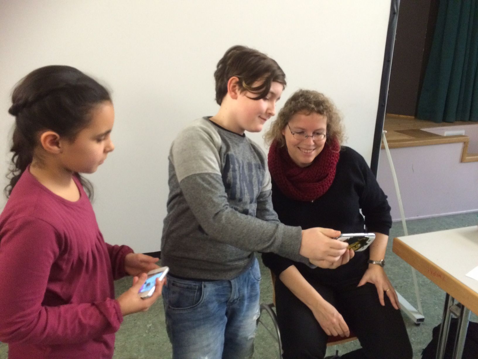 Im Anschluss an die Vorstellung des Buches durften die Schülerinnen und Schüler noch Fragen stellen, die bislang offen blieben – das freute nicht nur Lucas und Lea. Brandis erzählte, dass sie schon als Kind begonnen hat zu schreiben, ihre Schwester fungierte als Testleserin. Sie bestärkte ihre Schwester darin zu schreiben; erst viele Bücher später gestand sie Katja Brandis, dass sie den ersten Schreibversuch doch nicht so ganz gelungen fand, jedoch ihre Schwester zum Lächeln bringen wollte. Das war die Antwort, die Kim und Damian erfreute! Als dann noch jeder sein Buch, sein selbst angefertigtes Lesetagebuch oder seine Autogrammkarte signieren lassen wollte, war die Freude groß und die Schlange lang. Doch jeder, der ein Autogramm haben wollte, bekam es auch. Annika, Salma und ihre Freundinnen überredeten die Autorin sogar zu einem Selfie.