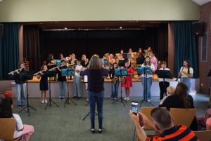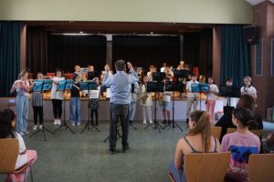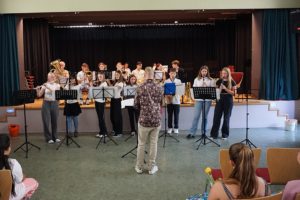 Und dann gab es noch eine Überraschung: Zum Mittelstufenorchester (Leitung: Herr Boos und Herr Köhler) gesellte sich schließlich die Bläserklasse 6. Im bekannten Arrangement von „Save Your Tears“ (Herr Boos) zeigten die Sechstklässler dabei, dass sie schon gut mithalten können! Keine Überraschung daher, dass mehr als die Hälfte von ihnen nach den Ferien ins Mittelstufenorchester übergehen wird.