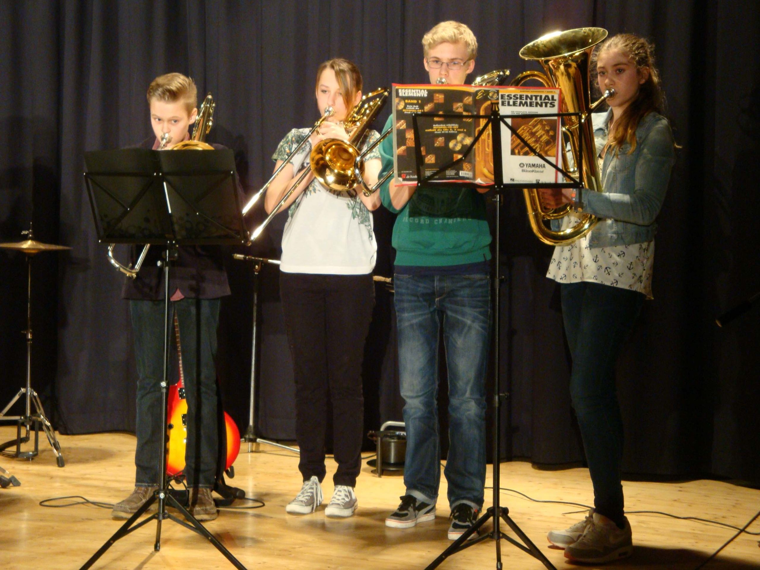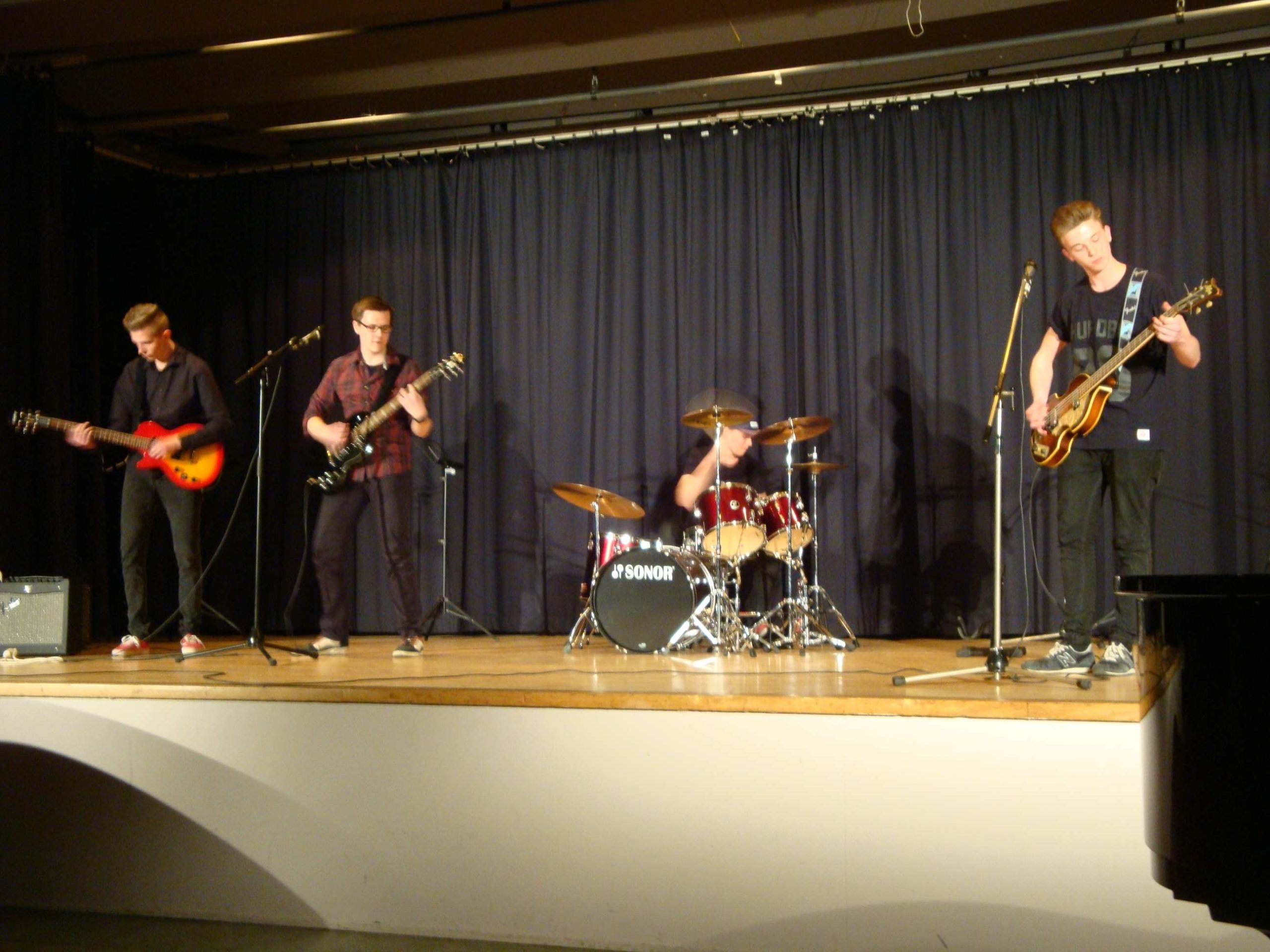Steffen Borgert, Q1 – Gitarre/Gesang, Marius Herber, Q2 – Gitarre, Lukas Hüskens, Q1 – Schlagzeug/Gesang, Jonah Lemm, Q2 – Bass/Gesang: Blink-182 I miss you, Nirvana Smells like teen spirit