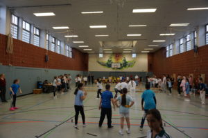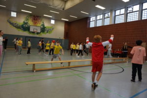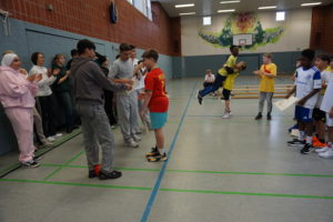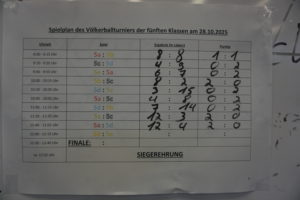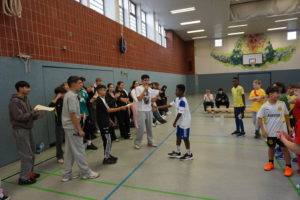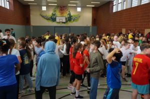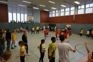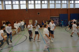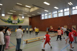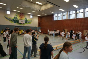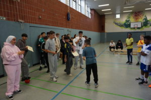Der Sport/Gesundheit-Kurs tauschte sich am Ende mit der Kurslehrerin Frau Reusch über die Erfahrungen des Völkerballturniers aus. Das Ergebnis war positiv, da es nur kleine Verletzungen bei den Kindern gab und alles geregelt ablief.