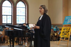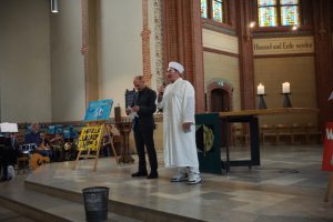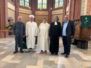 Frau Kiener, Pfarrerin in der Evangelischen Kirchengemeinde Altenessen-Karnap, und Frau Czernotta, Pfarrbeauftragte der Pfarrei St. Joseph in Essen-Frintrop, leiteten den Gottesdienst, der mit muslimischer Beteiligung stattfand – vertreten durch den Imam Ýbrahim Erol Kýlýçlý und Herrn Gür. Ihnen allen ein herzliches Dankeschön für Ihren Einsatz!