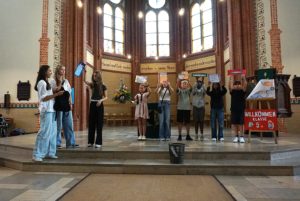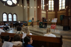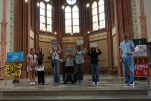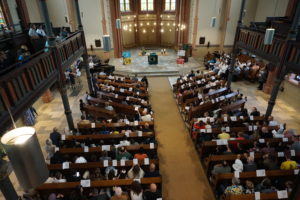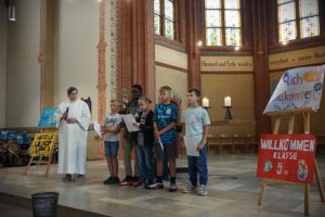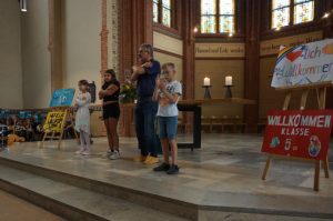 Am ersten Schultag nach den Sommerferien begrüßte das Leibniz-Gymnasium seine neuen 5.-Klässler*innen in der Alten Kirche. Nach einer Begrüßungsrede von Herrn Tenhaven begann der ökumenische Gottesdienst, der von den Religionskursen der Jahrgangsstufe 6 und ihren Lehrkräften vorbereitet wurde. An der Vorbereitung beteiligte sich auch Herr Gür, ein Vertreter der muslimischen Gemeinde an der Heßlerstraße.