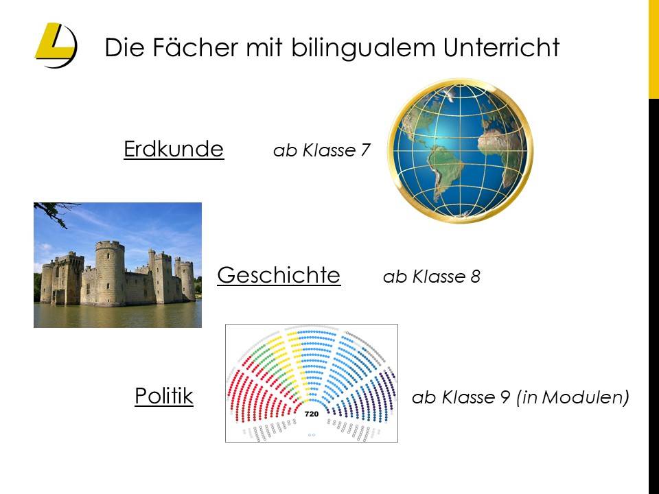 Am Leibniz-Gymnasium wird bilingualer Unterricht in den Fächern Erdkunde und Geschichte angeboten.